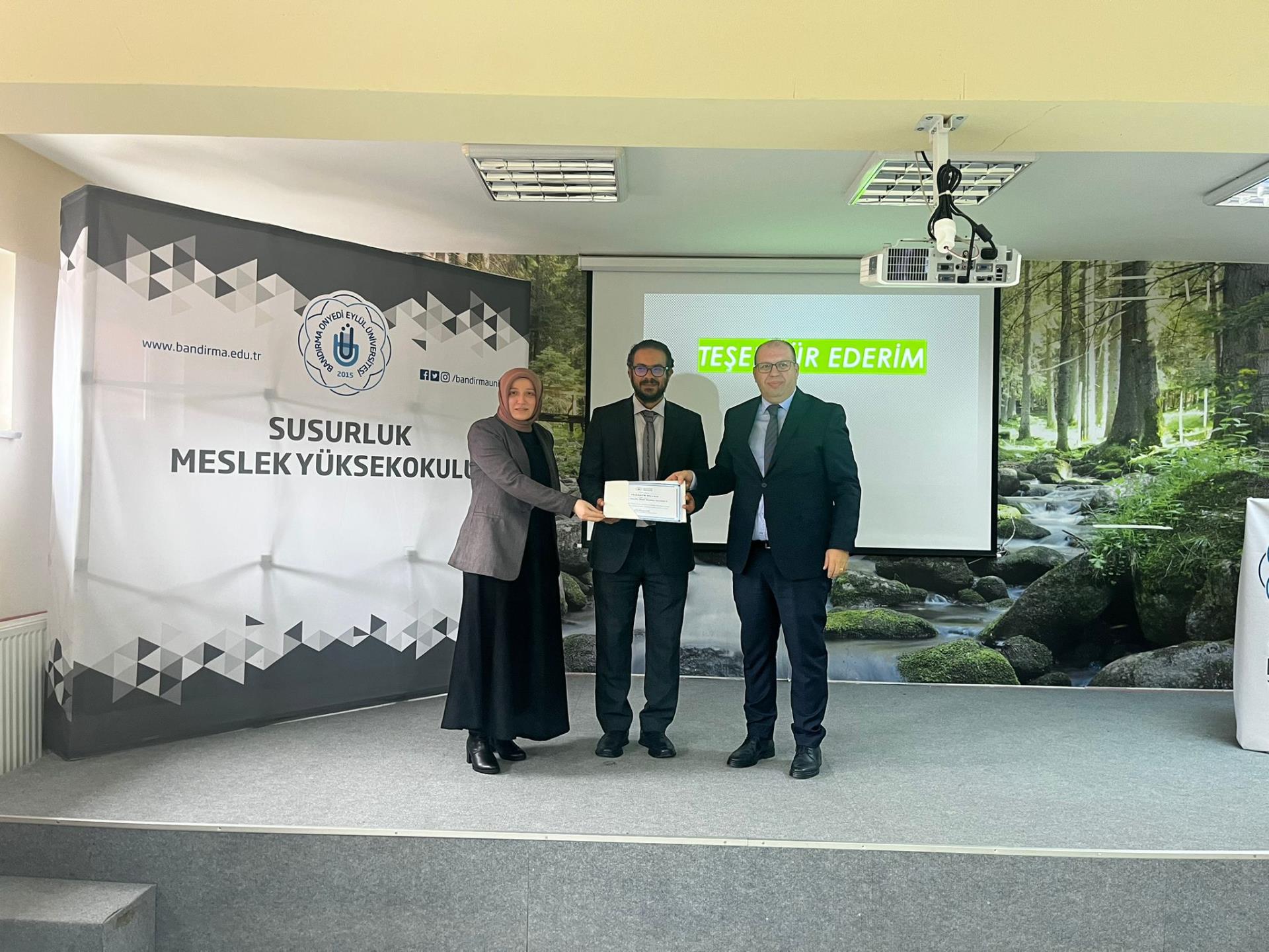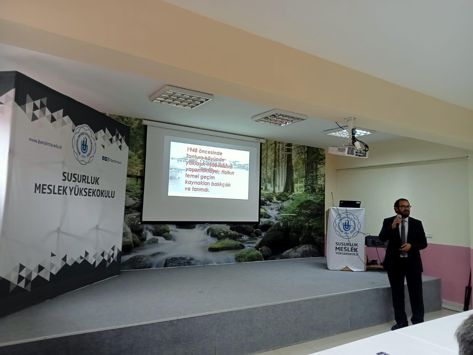 Yüksekokulumuzda, Üniversitemiz İlahiyat Fakültesi öğretim üyesi Doç.Dr. Rami İbrahim MAHMUT tarafından “Filistin: Nekbe, Siyonizm ve Kimliğin Mücadelesi” konulu konferans verilmiştir. Konferansa Susurluk Kaymakamı Turgut GÜLEN ve kıymetli eşi Meral GÜLEN hanımefendi ile Susurluk Belediyesi Meclis Üyesi Muzaffer ER teşrif etmişlerdir. Katılım sağlayan değerli hocalarımız, idari personelimiz ve öğrencilerimize teşekkür ederiz.