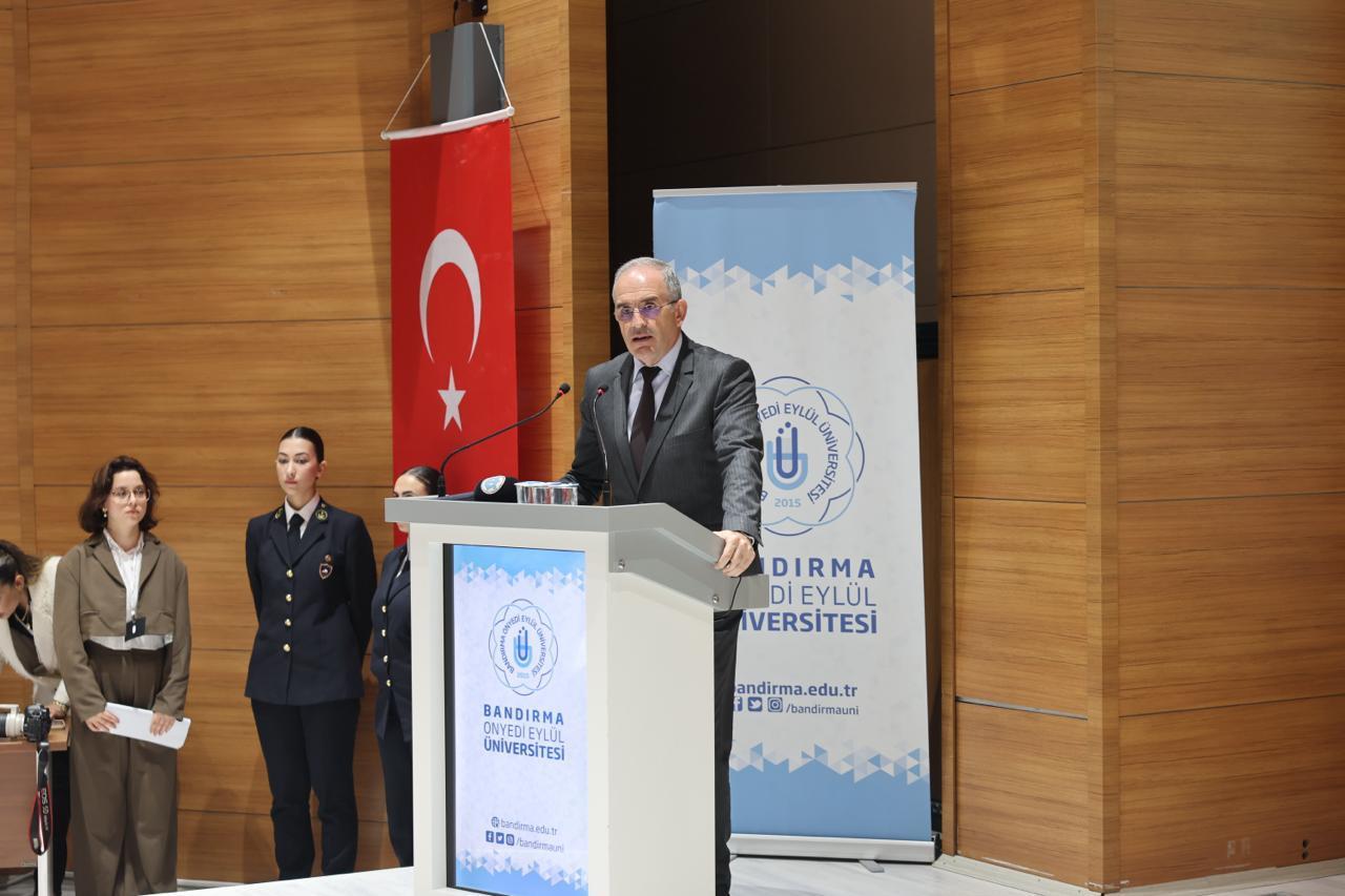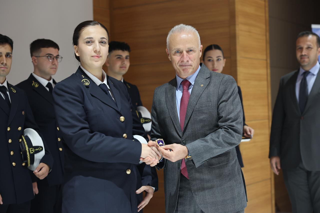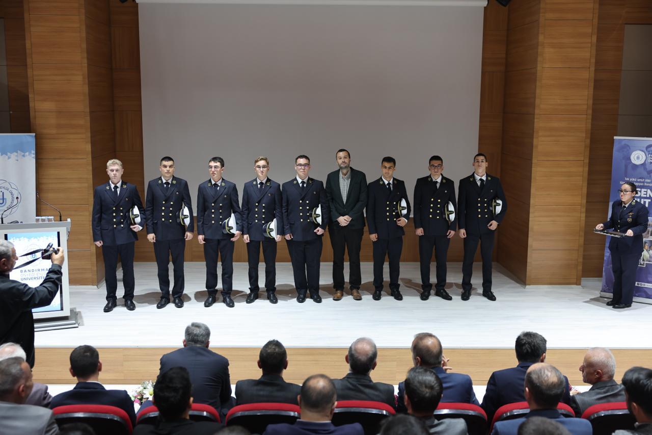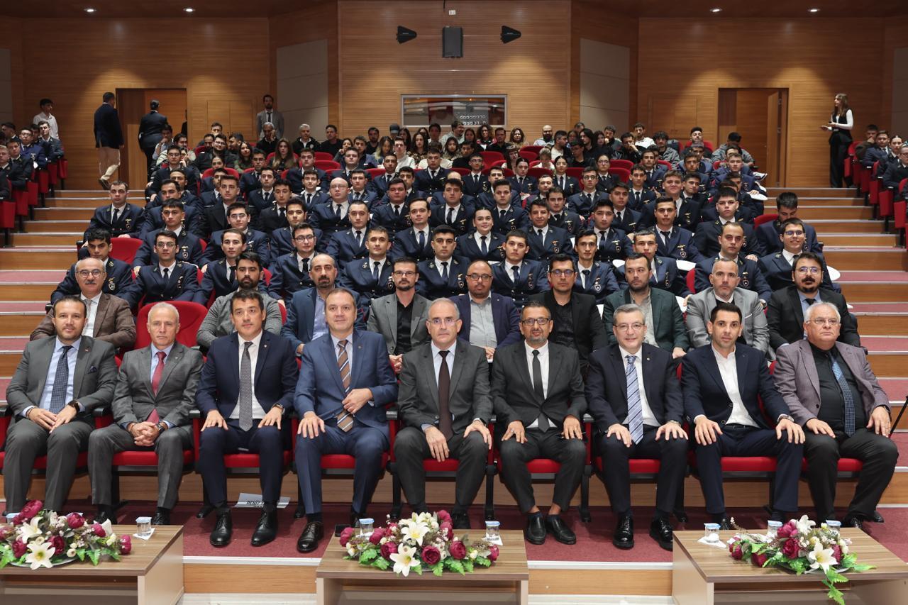Törenin açılış konuşmasını Denizcilik Fakültesi Dekanımız Prof. Dr. Celil Aydın gerçekleştirdi. Daha sonra denizcilik camiasının önde gelen isimlerinden İMEAK Deniz Ticaret Odası Yönetim Kurulu Başkanı Tamer Kıran bir konuşma gerçekleştirdi. Konuşmasında denizcilik mesleğinin disiplin, sorumluluk ve aidiyet duygusu gerektiren bir yaşam biçimi olduğuna dikkat çeken Kıran, sektörel deneyimlerini paylaşarak, öğrencilere denizciliğin Türkiye açısından taşıdığı stratejik önemi hatırlattı. Rektörümüz Prof. Dr. İsmail Boz ise selamlama konuşmasında, Üniversitemizin denizcilik eğitimine verdiği önemi vurgulayarak, fakültemizin güçlü altyapısı ve donanımlı akademik kadrosu ile sektöre nitelikli insan kaynağı yetiştirdiğini belirtti.