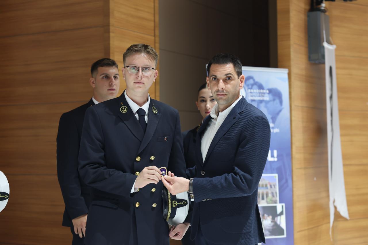Denizcilik Fakültesi, Deniz Ulaştırma İşletme Mühendisliği ve Gemi Makineleri İşletme Mühendisliği bölümlerinde öğrenim gören 1. sınıf öğrencilerimizin “Üniforma Giyme ve Bröve Takma Töreni”, büyük bir coşku ve gururla gerçekleştirildi. Denizcilik mesleğine ilk adımlarını atan öğrencilerimiz, bu anlamlı günde üniformalarını giyerek mesleki kimliklerinin bir göstergesi olan brövelerini taktı.