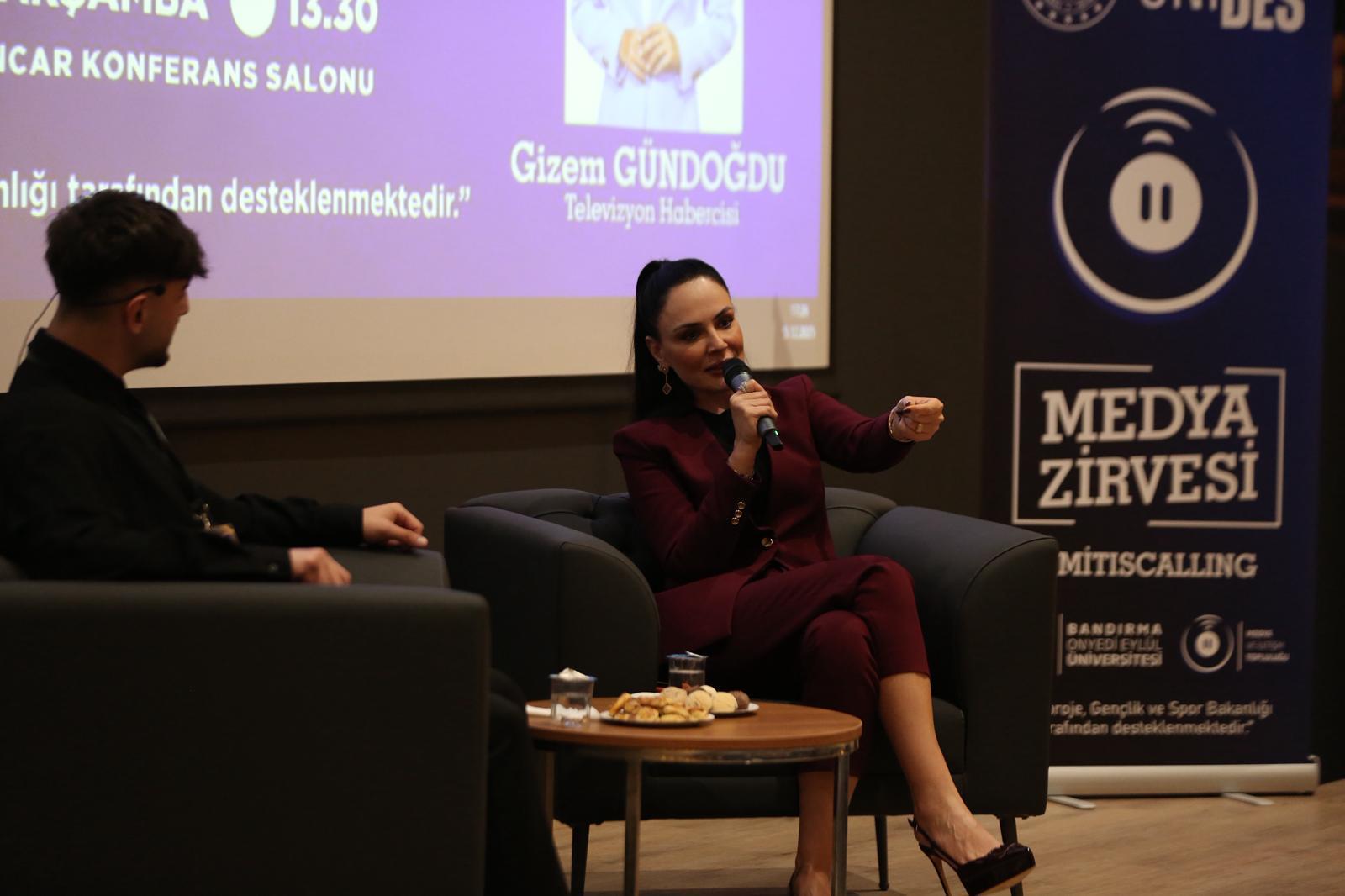 Etkinlik, Prof. Dr. Hatice Aydın ve Mustafa Cansever’in açılış konuşmalarıyla başladı. Programın ilk konuğu olan televizyon habercisi Gizem Gündoğdu, habercilik alanındaki deneyimlerini katılımcılarla paylaştı. Yeni Medya ve İletişim Bölümü öğrencisi Esma Açık moderatörlüğünde gerçekleşen söyleşide Gündoğdu, öğrencilerden gelen soruları da yanıtladı.