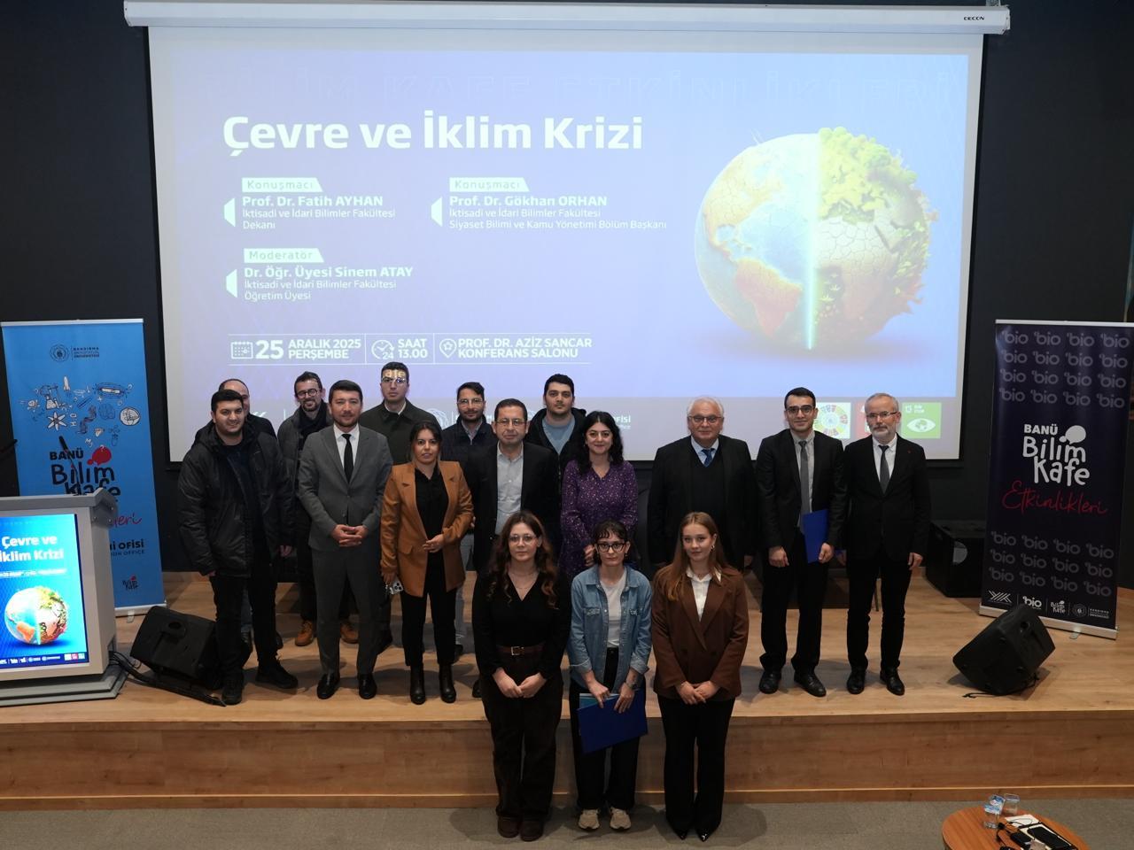 Bilim İletişimi Ofisimiz ile İktisadi ve İdari Bilimler Fakültemiz iş birliğinde, Yükseköğretim Kurulu (YÖK) öncülüğünde yürütülen Bilim Kafe Etkinlikleri kapsamında “Çevre ve İklim Krizi” başlıklı bir panel düzenlendi. Programa, Rektör Yardımcımız Prof. Dr. Alpaslan Serel, Genel Sekreterimiz Faruk Küçük, akademik ve idari personelimiz ile öğrencilerimiz katıldı.
