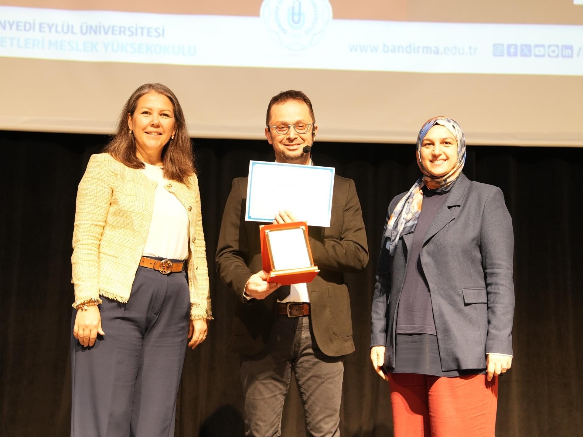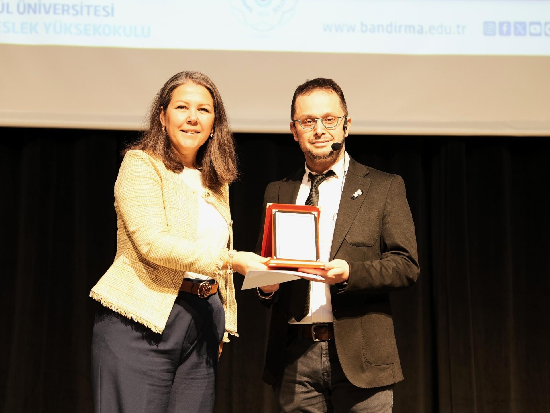Programın soru-cevap bölümünün ardından, Rektör Yardımcımız Prof. Dr. Ebru Kaya Mutlu tarafından Doç. Dr. Engin Başer’e katkılarından dolayı teşekkür belgesi ve plaket takdim edildi.
