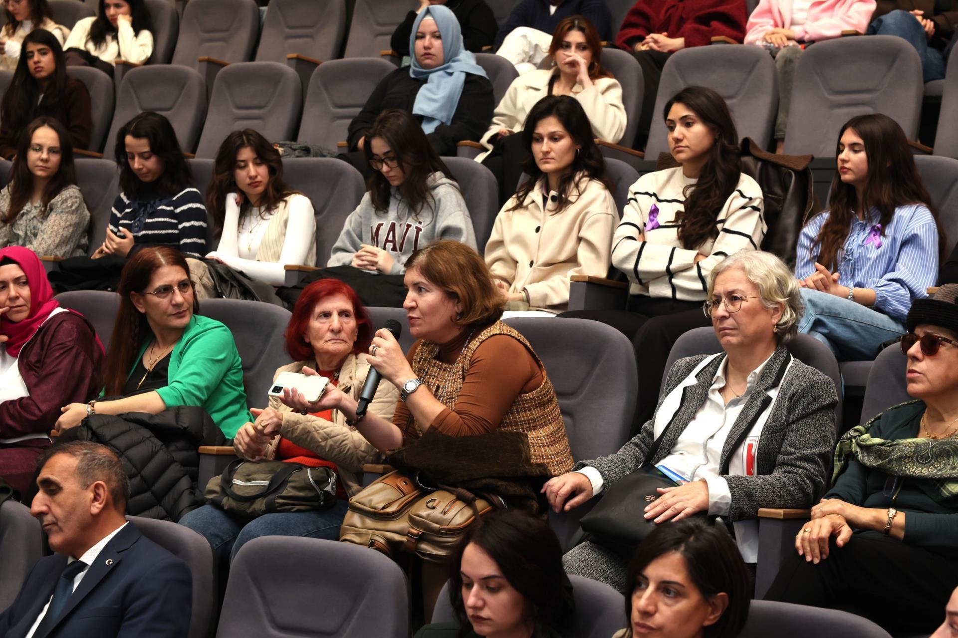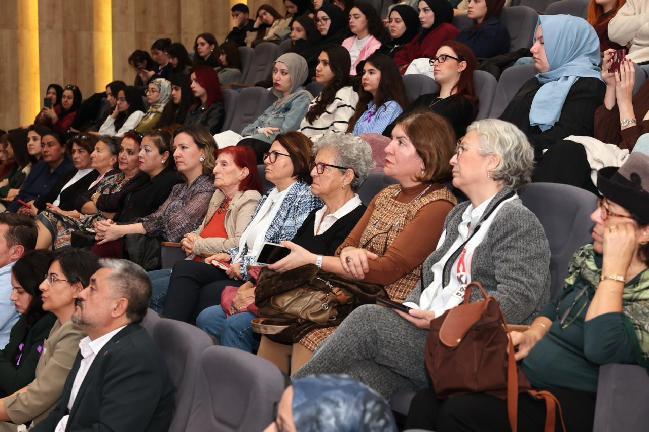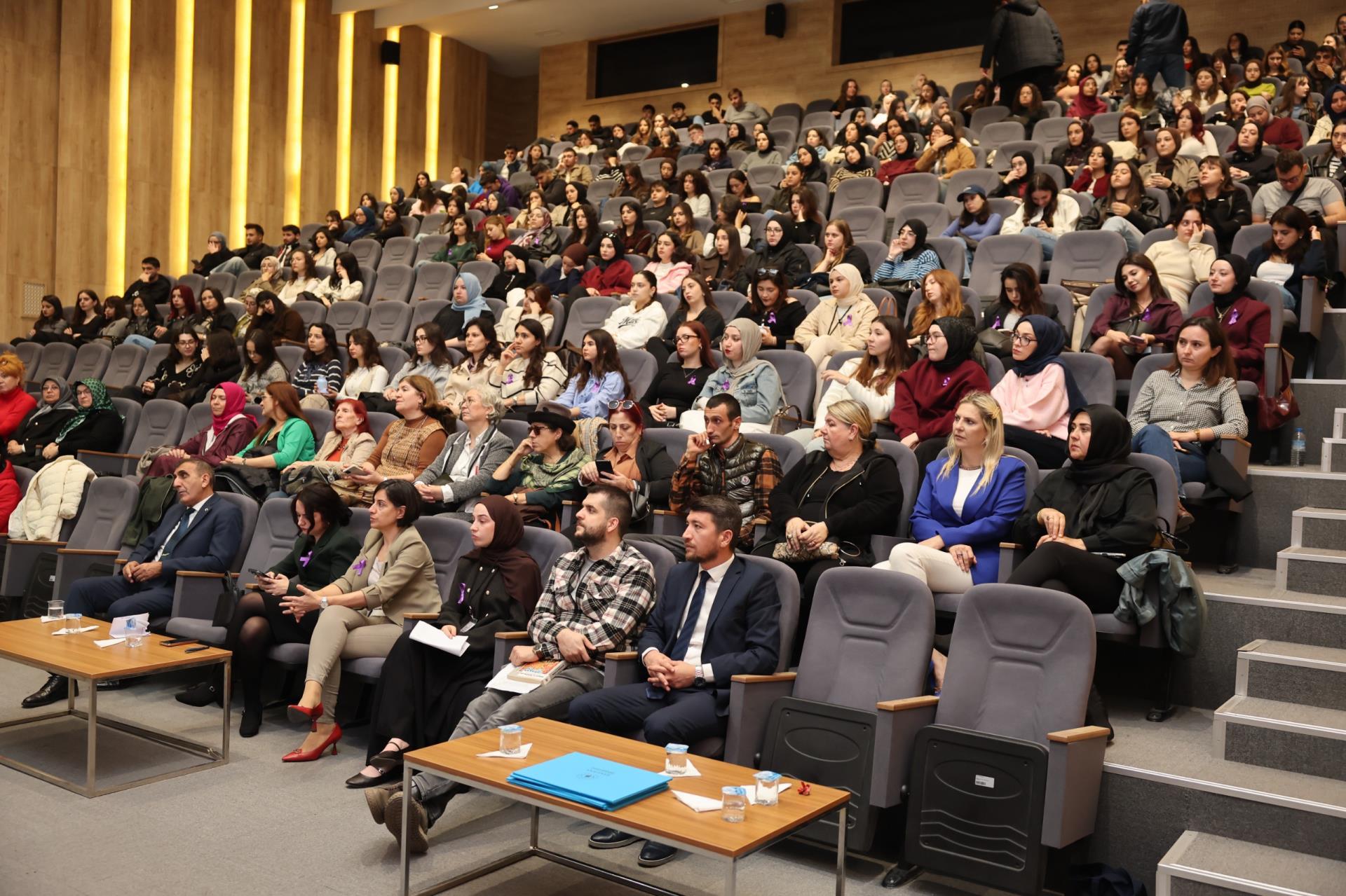 Kadın, Aile ve Toplum Hizmetleri Uygulama ve Araştırma Merkezimiz (BANÜ-KAT) ile Sosyal Hizmet Topluluğumuz tarafından, 25 Kasım Kadına Yönelik Şiddete Karşı Uluslararası Mücadele Günü kapsamında bir panel gerçekleştirildi. Prof. Dr. Aziz Sancar Konferans Salonu’nda gerçekleştirilen panel, saygı duruşu ve İstiklal Marşı’nın okunmasıyla başladı. Programa; Rektörümüz Prof. Dr. İsmail Boz’un eşi Sibel Boz, İktisadi ve İdari Bilimler Fakültesi Dekanımız Prof. Dr. Serap Palaz Çakır, öğretim üyelerimiz, kadın dernekleri temsilcileri, basın mensupları ile öğrencilerimiz katılım sağladı.