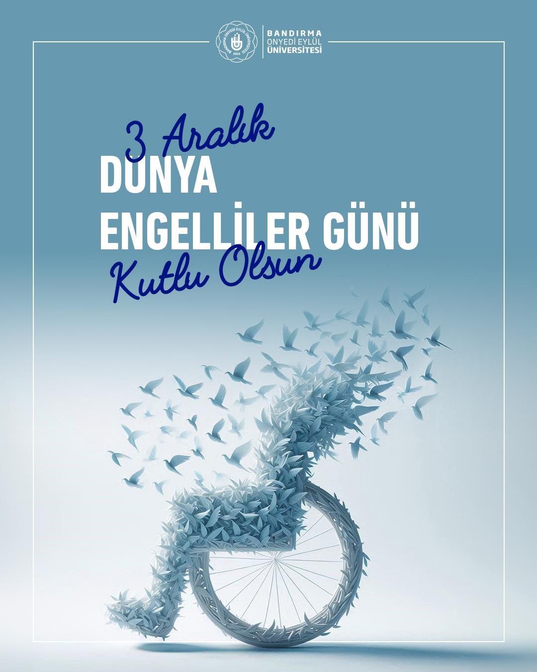 Engelli bireylerin yaşamın her alanında karşılaştığı görünür ve görünmez engellerin kaldırılması, birlikte var olmanın en insani gereğidir. Birleşmiş Milletler tarafından 1992 yılında ilan edilen bu özel günün temel amacı, engelli bireylerin sosyal, kültürel ve ekonomik hayata tam, eşit ve etkin katılımını sağlayacak farkındalık ve çözümleri desteklemektir. Bu çerçevede, Bandırma Onyedi Eylül Üniversitesi olarak bizler de engelli bireylerin eğitim, sosyal yaşam ve istihdam süreçlerine aktif katılımını destekleyecek uygulamaları kararlılıkla sürdürmekteyiz. Fiziksel erişilebilirliğin ötesinde, kapsayıcı düşünce sistemlerini ve empatiyi merkez alan bir üniversite olma yolunda adımlar atmaktayız.