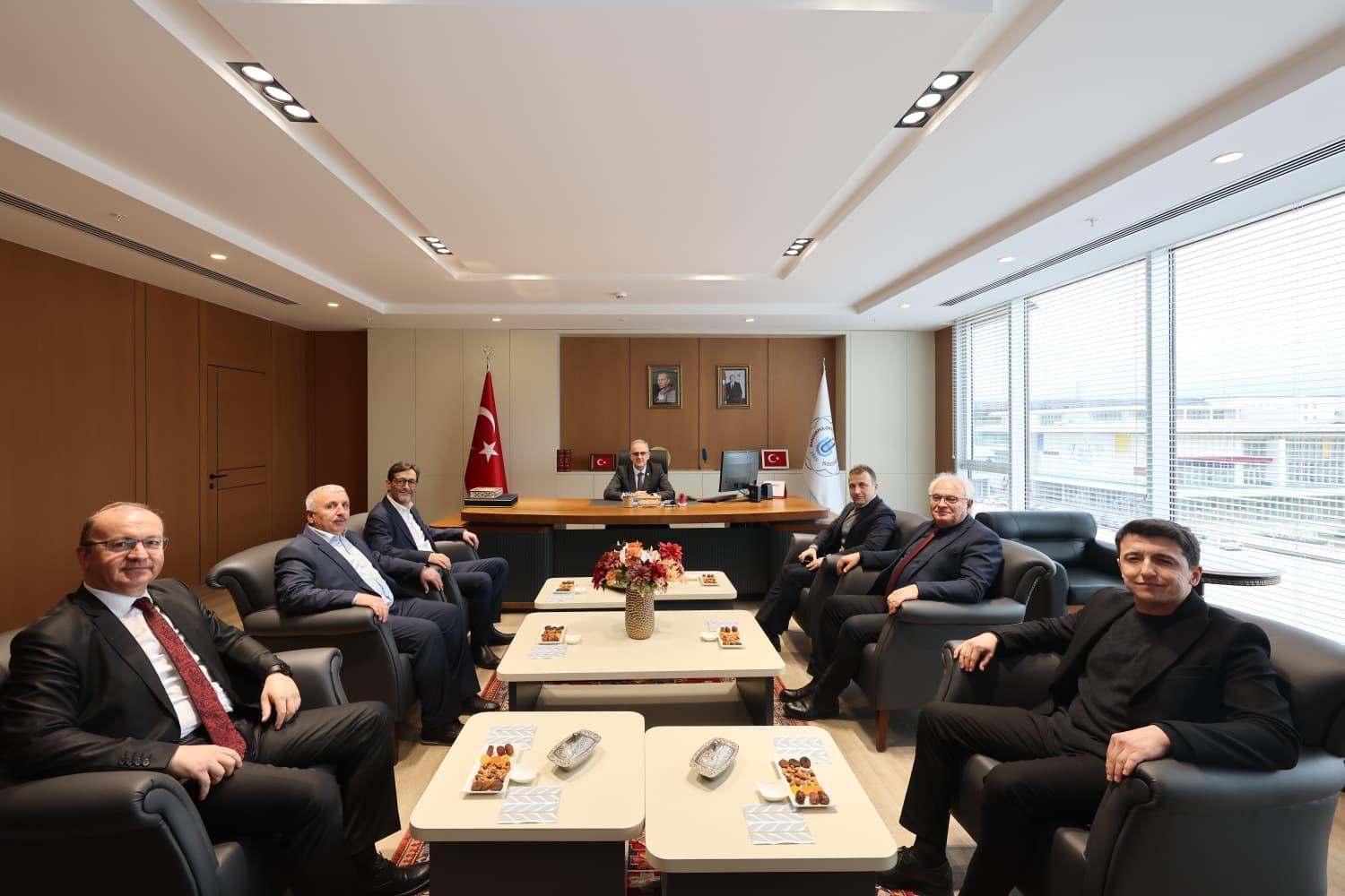 Rektörlük makamında gerçekleşen ziyarette, Rektör Yardımcılarımız Prof. Dr. Alpaslan Serel ve Prof. Dr. Mehmet Emin Erçakar da hazır bulundu. Ziyaret kapsamında, Üniversitemiz ile yerel yönetimler ve sanayi iş birlikleri başta olmak üzere yürütülebilecek ortak çalışmalar üzerine karşılıklı görüş alışverişinde bulunuldu. Ziyaretten duyduğu memnuniyeti dile getiren Rektörümüz Prof. Dr. İsmail Boz, nazik ziyaretleri için Hüseyin Baş ve Ali Kemal Derin’e teşekkür etti.