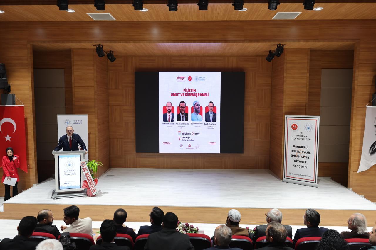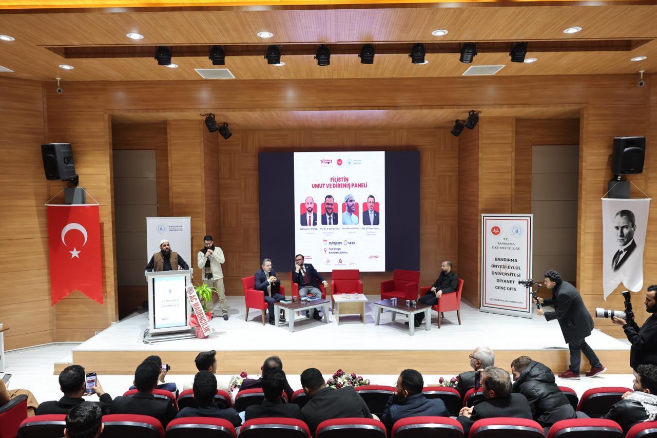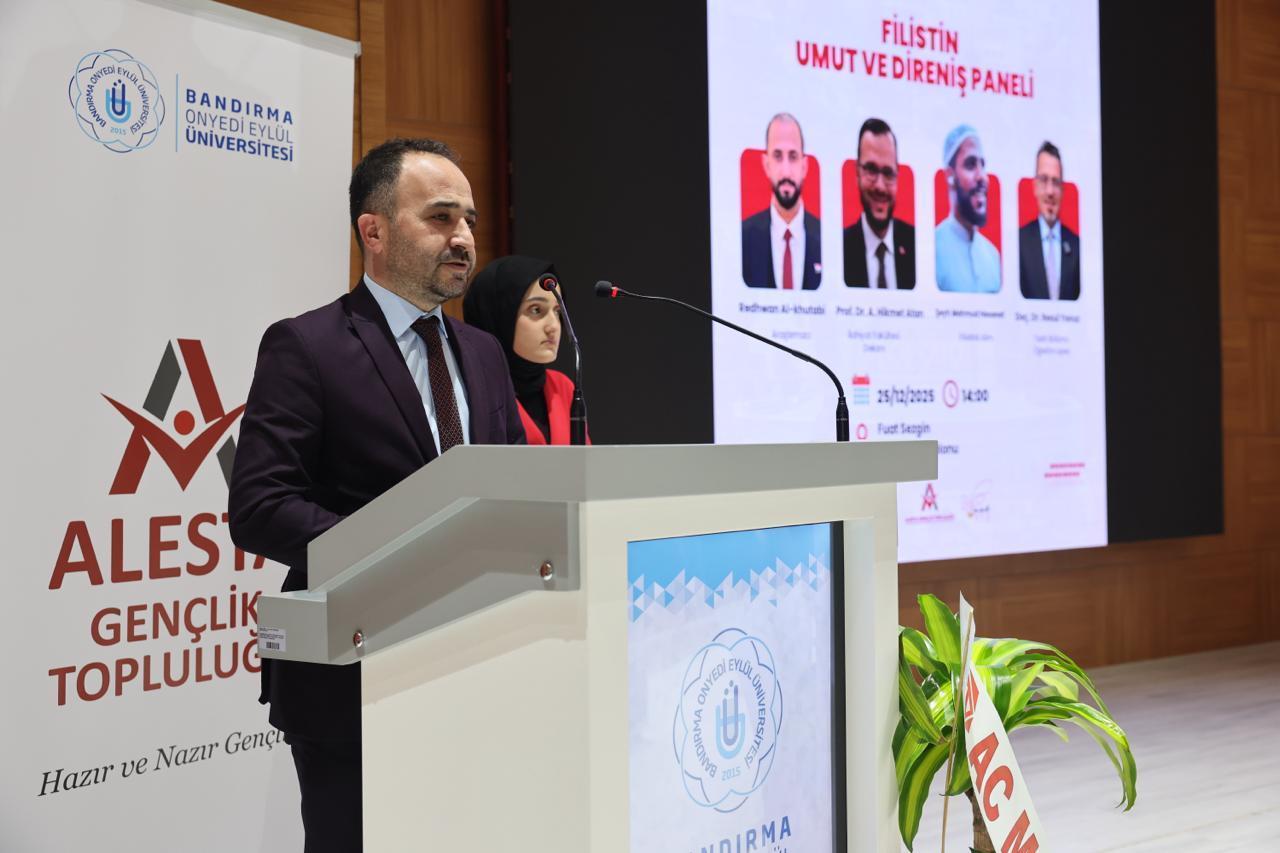 Panelde konuşmacı olarak İlahiyat Fakültesi Dekanımız Prof. Dr. A. Hikmet Atan, Mahmud Hasanat ve Tarih Bölümü Öğretim Üyemiz Doç. Dr. Resul Yavuz yer aldı. Panelin moderatörlüğünü ise Araştırmacı Redhwan Al-khutabi üstlendi. Konuşmacılar; Filistin meselesinin tarihsel arka planı, direnişin toplumsal ve inanç temelli boyutları ile güncel gelişmeler üzerine kapsamlı değerlendirmelerde bulundu.