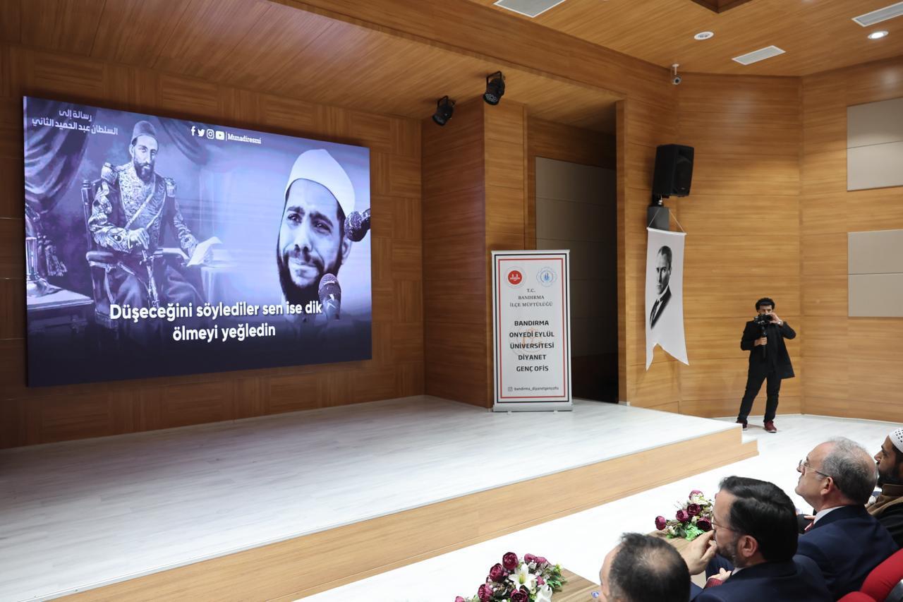 Üniversitemiz ev sahipliğinde, Bandırma Diyanet Genç Ofis tarafından İsrail’in Gazze’ye yönelik saldırılarından etkilenen Filistin halkına maddi ve manevi destek sağlamak amacıyla “Filistin: Umut ve Direniş” Kermesi düzenlendi. Prof. Dr. Fuat Sezgin Konferans Salonu Fuaye Alanı’nda gerçekleştirilen ve Rektörümüz Prof. Dr. İsmail Boz’un da katıldığı kermese akademik ve idari personelimiz ile öğrencilerimiz yoğun ilgi gösterdi.