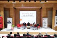 Kermesin ardından “Filistin: Umut ve Direniş” başlıklı panel gerçekleştirildi. Prof. Dr. Fuat Sezgin Konferans Salonu’nda düzenlenen panel, saygı duruşu ve İstiklal Marşı’nın okunmasıyla başladı. Programın açılış konuşmasını Rektörümüz Prof. Dr. İsmail Boz yaptı. Rektörümüz konuşmasında, Filistin’de yaşanan insani dramın tüm insanlığın ortak vicdanını derinden yaraladığını ifade ederek; adalet, insan hakları ve barış temelinde Filistin halkının yanında olmanın insani ve ahlaki bir sorumluluk olduğunu vurguladı. Tarihimizden örnekler vererek konuşmasına devam eden Prof. Dr. Boz, Türk Milleti olarak her zaman zulmün karşısında ve mazlumun yanında olduğumuzu belirterek 1492 yılında Avrupa’da zulme uğrayan yahudilere kucak açtığımızı hatırlattı. Şu ana kadar altmış beş bin insanın İsrail tarafından katledildiğini belirten Prof. Dr. Boz, İslam dünyasında birlik ve beraberliğin öneminin de altını çizdi.